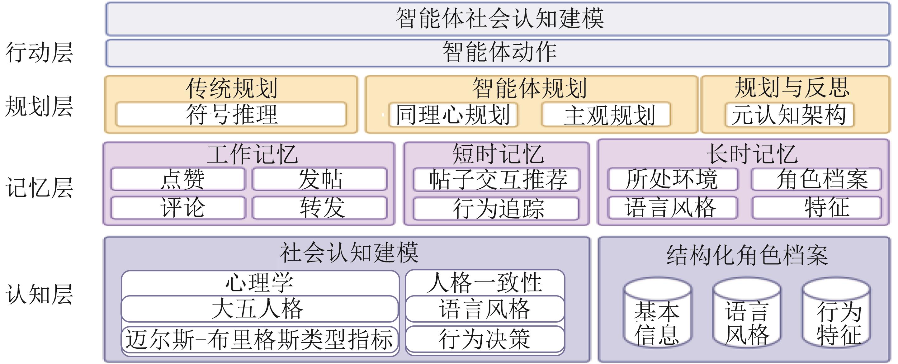 | 模拟前(数据与建模) | 建模维度 | 个体 | 聚焦智能体自身的静态属性与动态言行数据 |